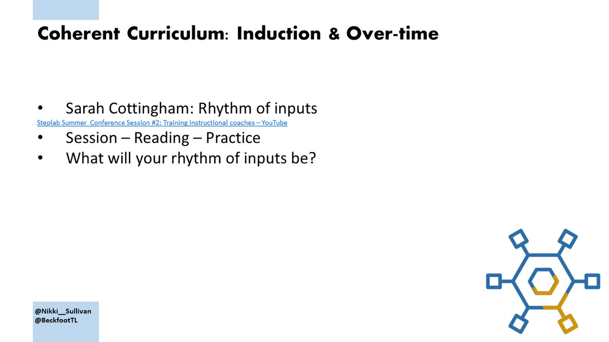 Secondly, we can consider our "rhythm of inputs" – not all sessions need to be face-to-face. How are we utilising reading, reflection…