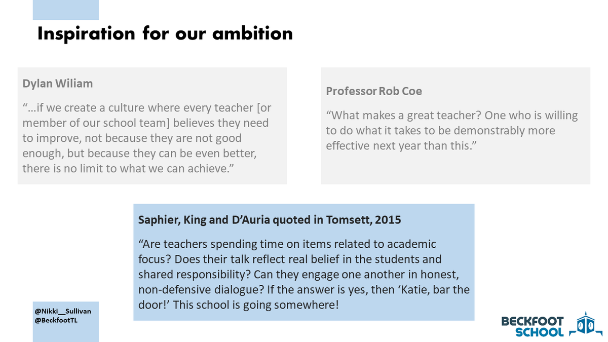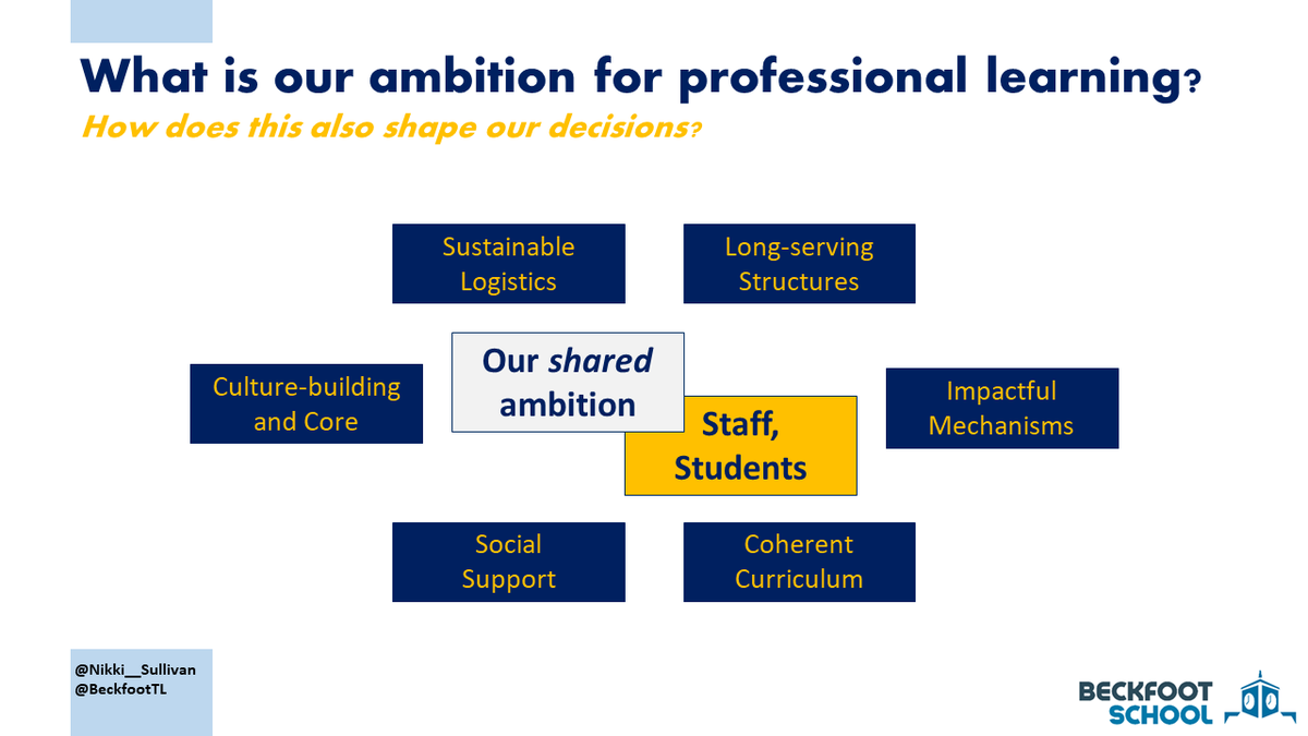 I also think CPD is too important not to have its own ambition. Ours may appear an obvious choice but it was deliberately chosen. Reflective practitioners, for example, speaks to the notion of taking time, exploring, reading, trialling... 18/