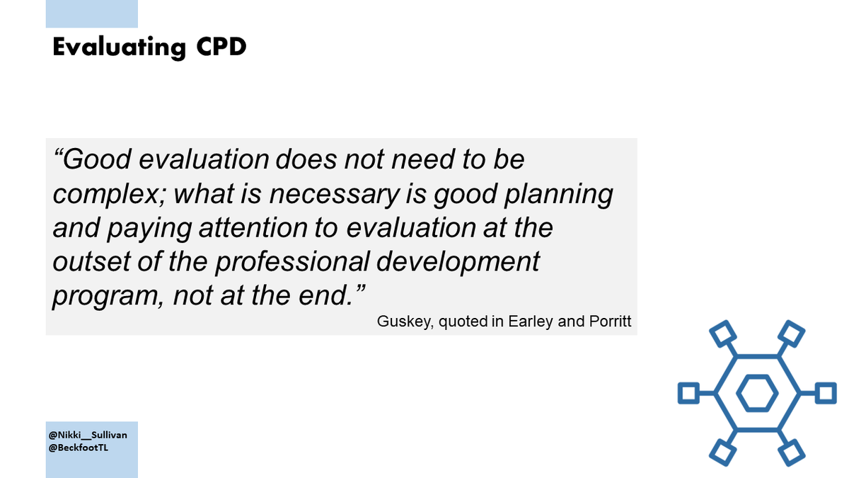 My next article for @HWRK_Magazine is all about how we can approach evaluating CPD, drawing upon the work of @informed_edu & @bridget89ec and @ViviennePorritt. All being well, my next @researched1 will be based on this too. 20/