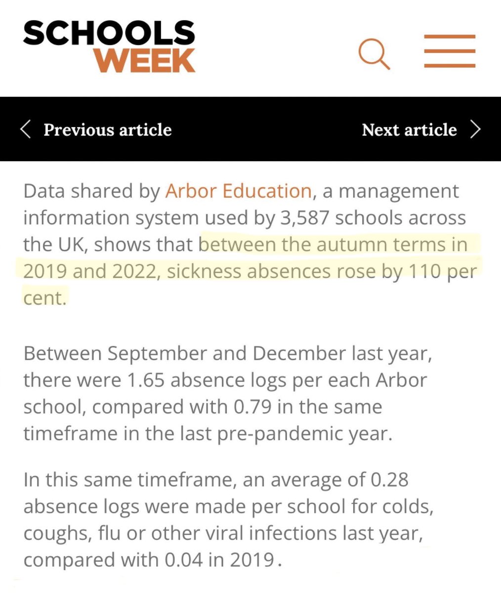 Absences specifically due to colds, flu & other (unnamed!) viruses were 7 TIMES HIGHER in Autumn 2022 vs Autumn 2019.