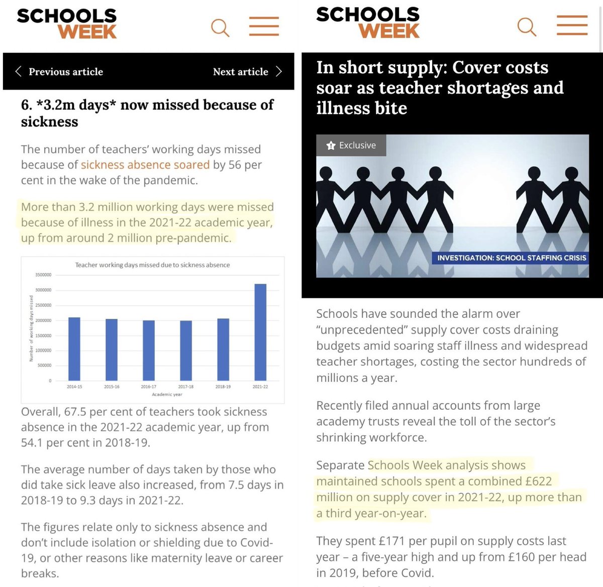 3.2m teaching days were missed in 2021/22 due to staff illness.