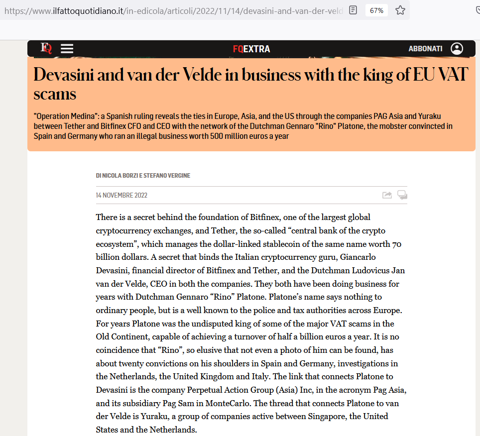 2/ That both main founders of Bitfinex/Tether have a checkered history was already known. Devasini, a former plastic surgeon, was involved in counterfeiting, patent infringement & commercial fraud. JL vd Velde is banned from ever starting a Chinese company after financial issues.