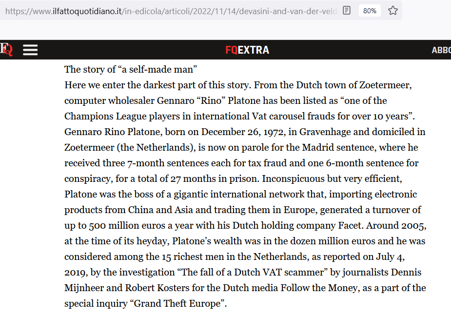 3/ Recently came to light that they both shared a company with the notorious VAT fraud Rino Platone, who has been convicted in Germany/Spain and had a revenue of over $500 million per year. But that is only one of many connections in a complex web with ties to organized crime.