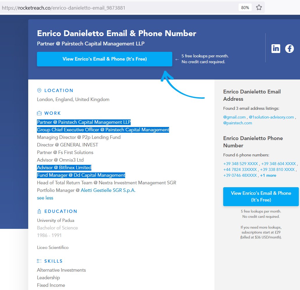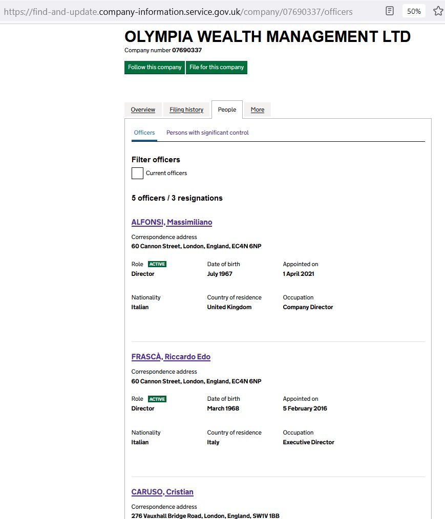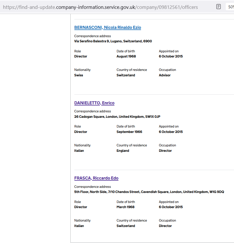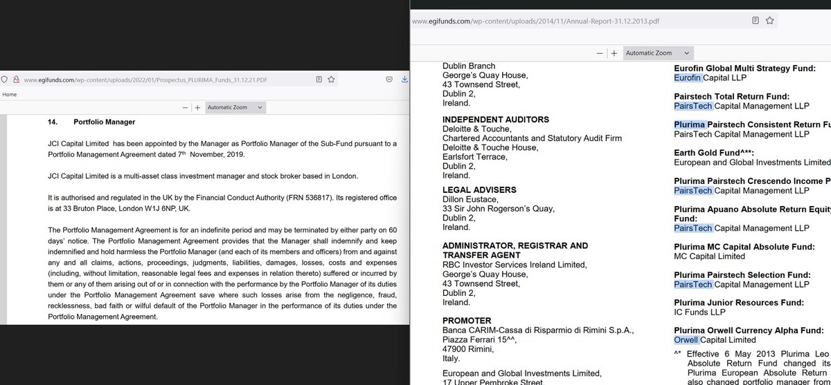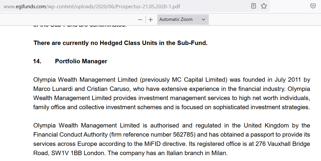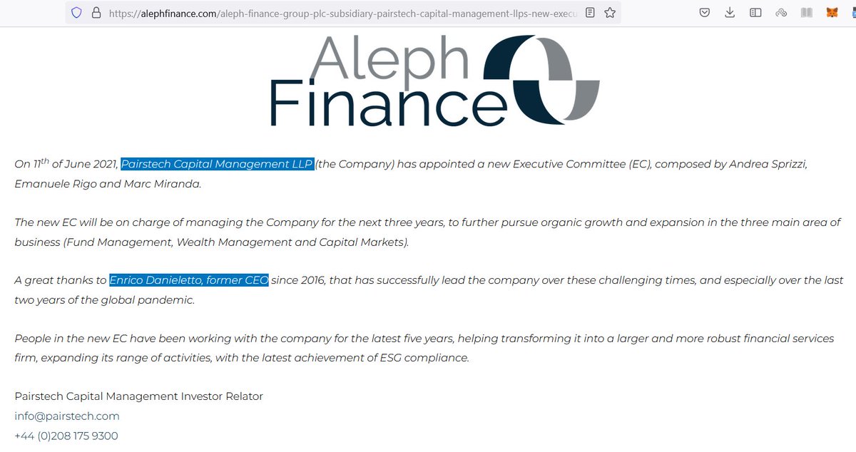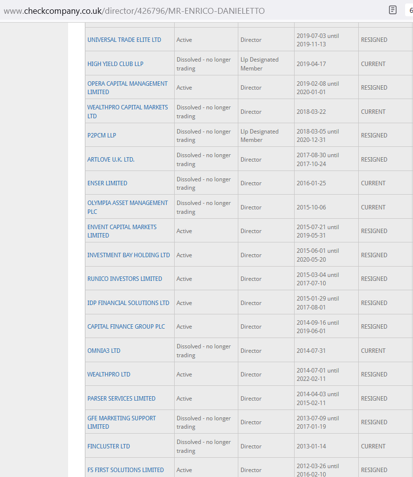 14/ Enrico Danieletto managed multiple EGI PLURIMA funds via his company Pairstech. A business partner of Danieletto, Riccardo Frasca (both part of Olympia Asset Mgmt) worked with Cristian Caruso for Olympia Wealth Management, also responsible for managing multiple EGI funds.