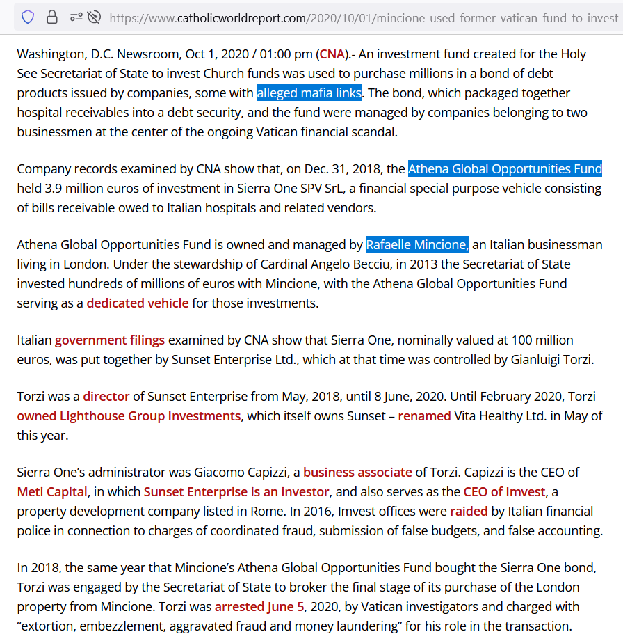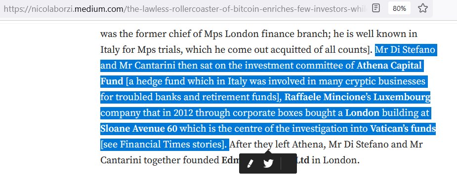 9/ Di Stefano and Cantarini were also part of Athena Capital Fund, managed by the controversial Raffaele Mincione, who has a checkered history and is deeply involved in a major real estate scandal with Vatican funds (fraud & money laundering), with deep ties to organized crime.