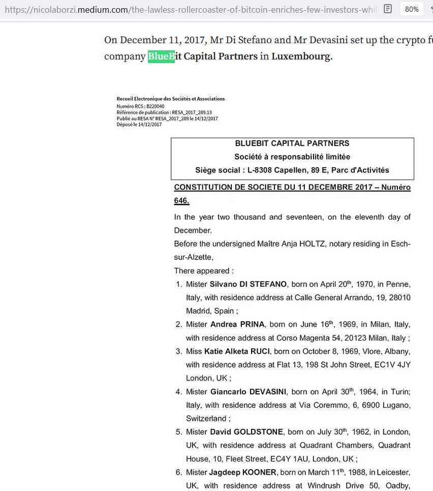 7/ Silvano di Stefano, Tether’s CIO, had a company with Devasini in Luxembourg called BlueBit Capital, together with Jag Kooner. Kooner & Di Stefano, together with Alberto Cantarini were part of Edmond Capital (now insolvent), a spin-off of Duet Group, implicated in Cum-Ex fraud.
