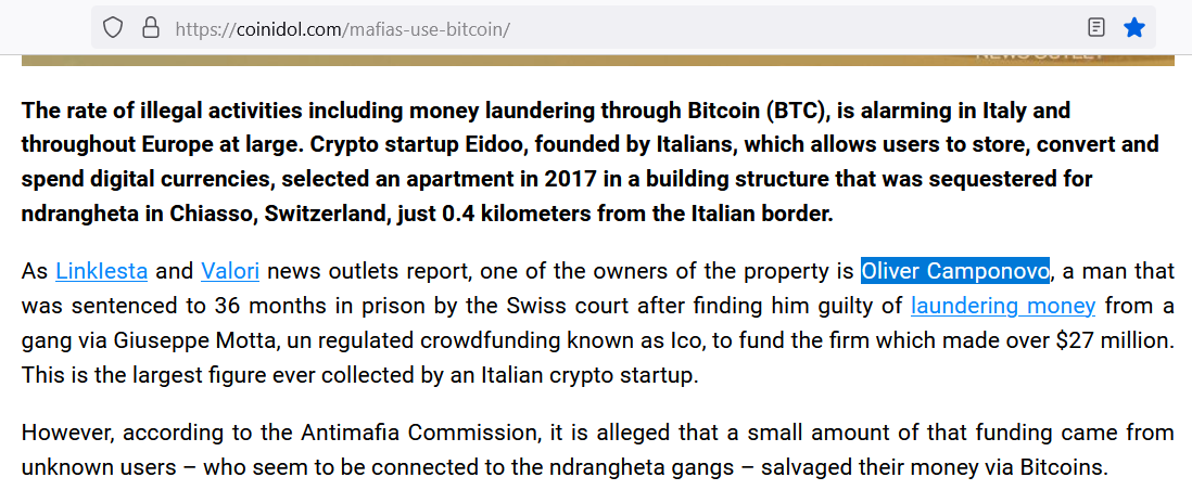 11/ Devasini is associated with Paolo Barrai, who introduced him to Wonderlands’s Daniele Sestagalli. Barrai & Sestagalli are connected via their companies to Oliver Camponovo, who was jailed for 3 years for money laundering of narcodollars for the ‘Ndrangheta via Dubai/Bahamas.