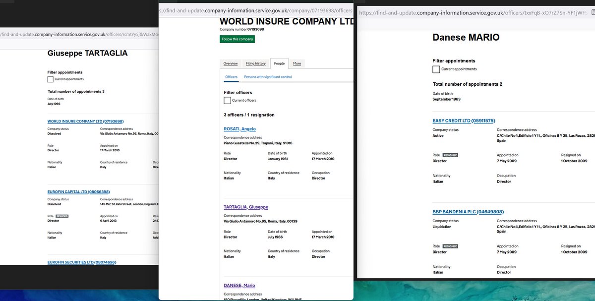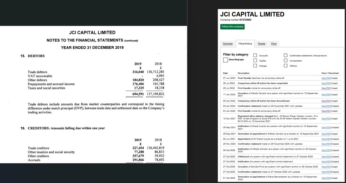 15/ Another EGI fund mgr, JCI Capital, also tied to Danieletto via R. Colapinto was recently struck off & its latest annual report shows a £130 million gap. Struck-off Eurofin Capital’s G. Tartaglia shares a company with M. Danese, who was part of the criminal BBP Bandenia bank.