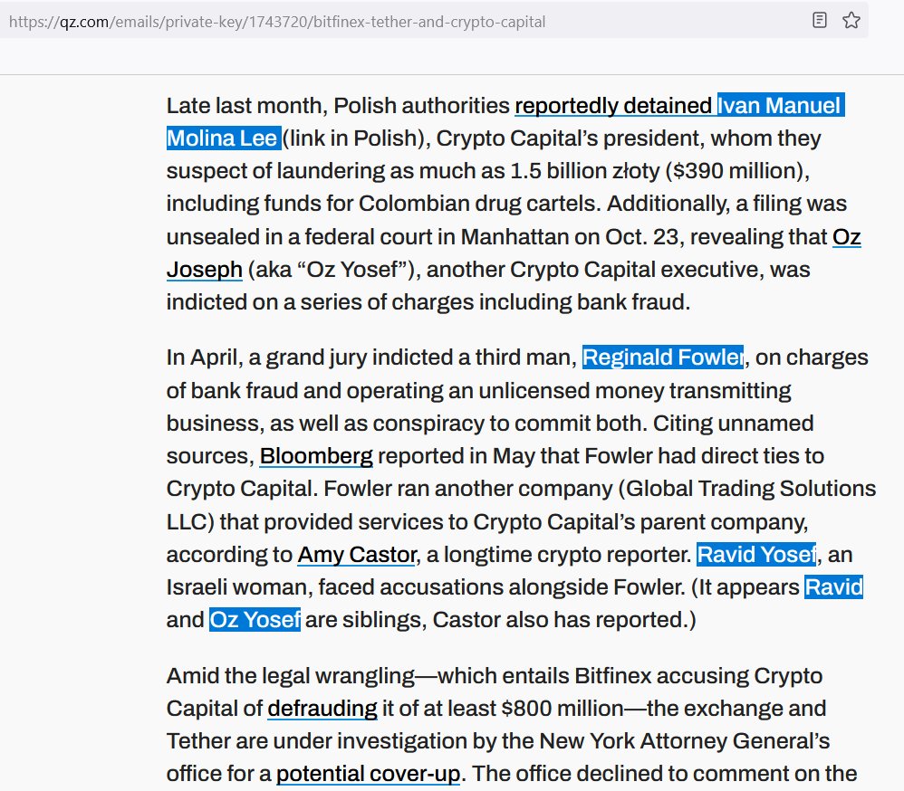 16/ Then we make a big discovery. We find a connection between an EGI fund and Crypto Capital Corp, Tether’s shadow bank. Its CEO, Ivan Manuel Molina Lee, was part of an international drug cartel laundering money with Reggie Fowler and Oz & Ravid Yosef. Oz was Devasini’s contact.