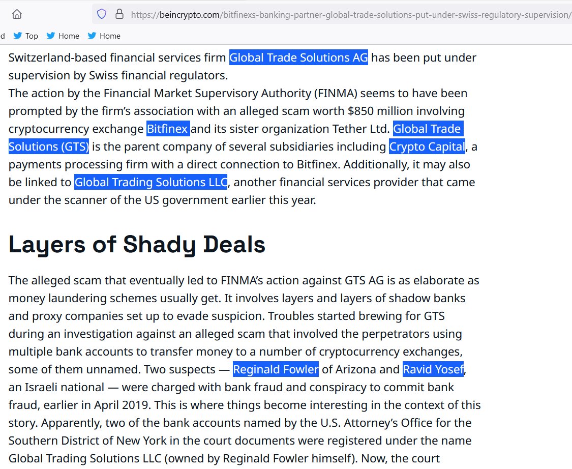 24/ Bitfinex/Tether is deeply routed in this network of people involved in financial misconduct tied to organized crime, indicating that the current crypto foundations seem to be hijacked by criminals who benefit the most by laundering money via USDT & manipulating the BTC price.
