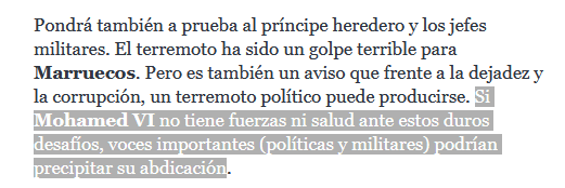4) Si LO PAÍS al principio se alineó con Mohamed VI alabando su "urgente" respuesta, hoy se publican DOS artículos de fuentes habitualmente pro-marroquíes que ... critican a Mohamed VI en la misma línea en la que lo han hecho hace meses los medios del PODER anglo