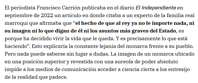 El primer artículo es de un antiguo corresponsal en Rabat de LO ABC (MEDIO TRADICIONALMENTE PRO-MARROQUÍ) que insinúa que dentro de Marruecos hay "voces importantes" que piden a Mohamed VI que abdique, nada más y nada menos. hechosdehoy.com/hassan-ii-moha…