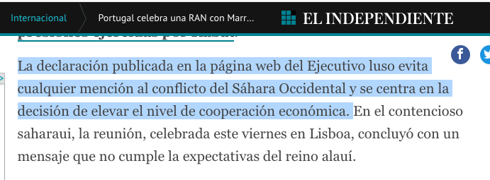Y, en efecto, en la página OFICIAL del gobierno portugués al informar sobre la cumbre Portugal-Marruecos NO SE DICE NADA sobre el Sahara Occidental... portugal.gov.pt/pt/gc23/comuni…