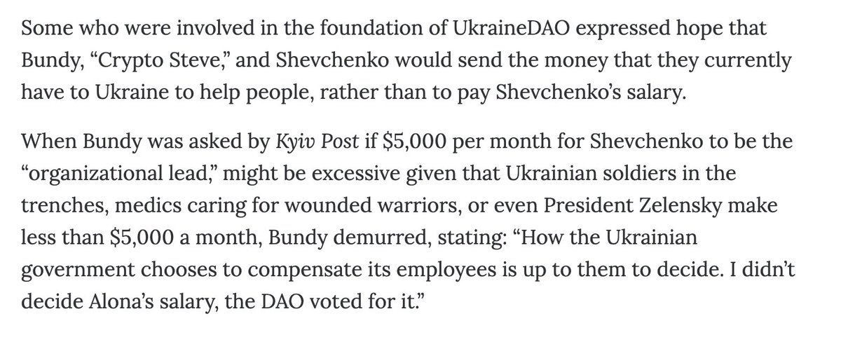 Some, who were involved in the foundation of Ukraine DAO expressed hope that DAO would send the money that they currently have to Ukraine to help people, rather than to pay Shevchenko’s salary: