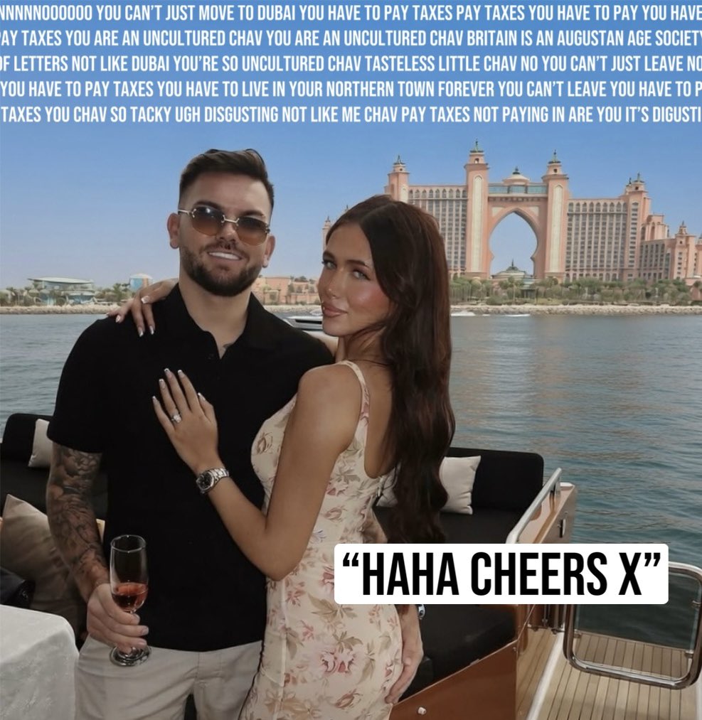 Sam Gowland AKA Deano has left his highly-cultured home city of Middlesbrough and moved to Dubai IRL. He lives there with his new model girlfriend and is also now a multimillionaire via his property investment portfolio