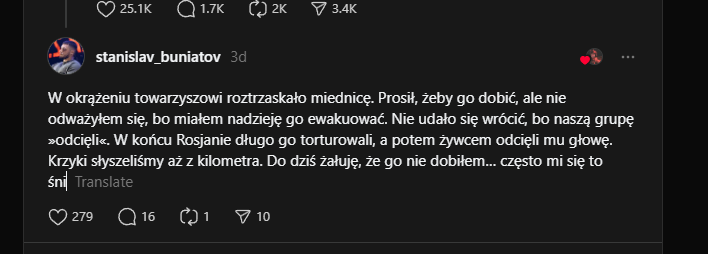 Na Threads pojawił się wątek z pytaniem do żołnierzy, gdzie pada padło pytanie czy było coś w wojnie co złamało im serce.