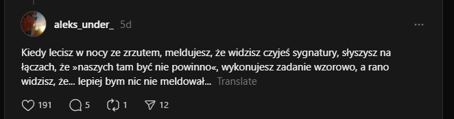 "Kiedy lecisz w nocy ze zrzutem, meldujesz, że widzisz czyjeś sygnatury, słyszysz na łączach, że »naszych tam być nie powinno«, wykonujesz zadanie wzorowo, a rano widzisz, że... lepiej bym nic nie meldował..."