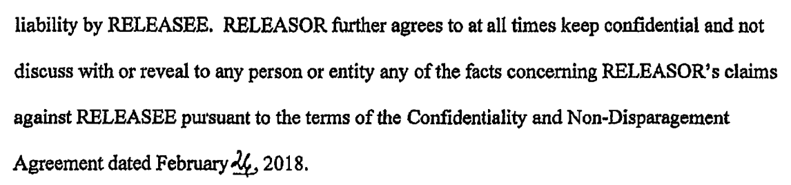 She received $475,000 in exchange for her silence.