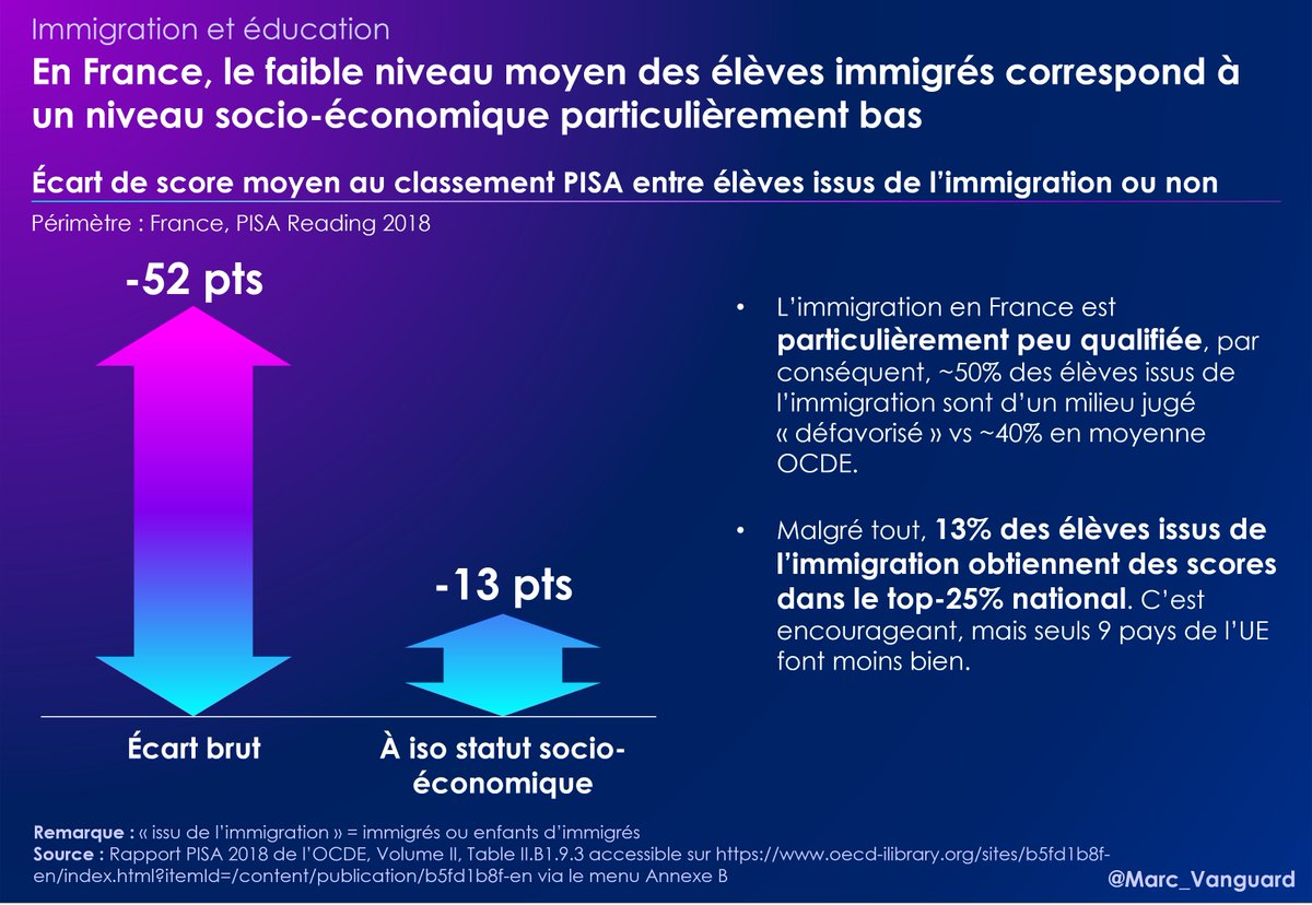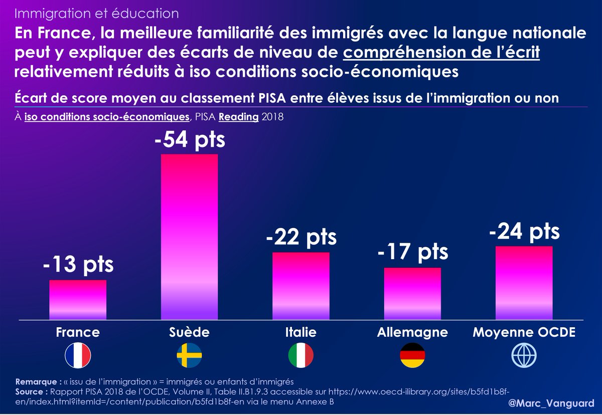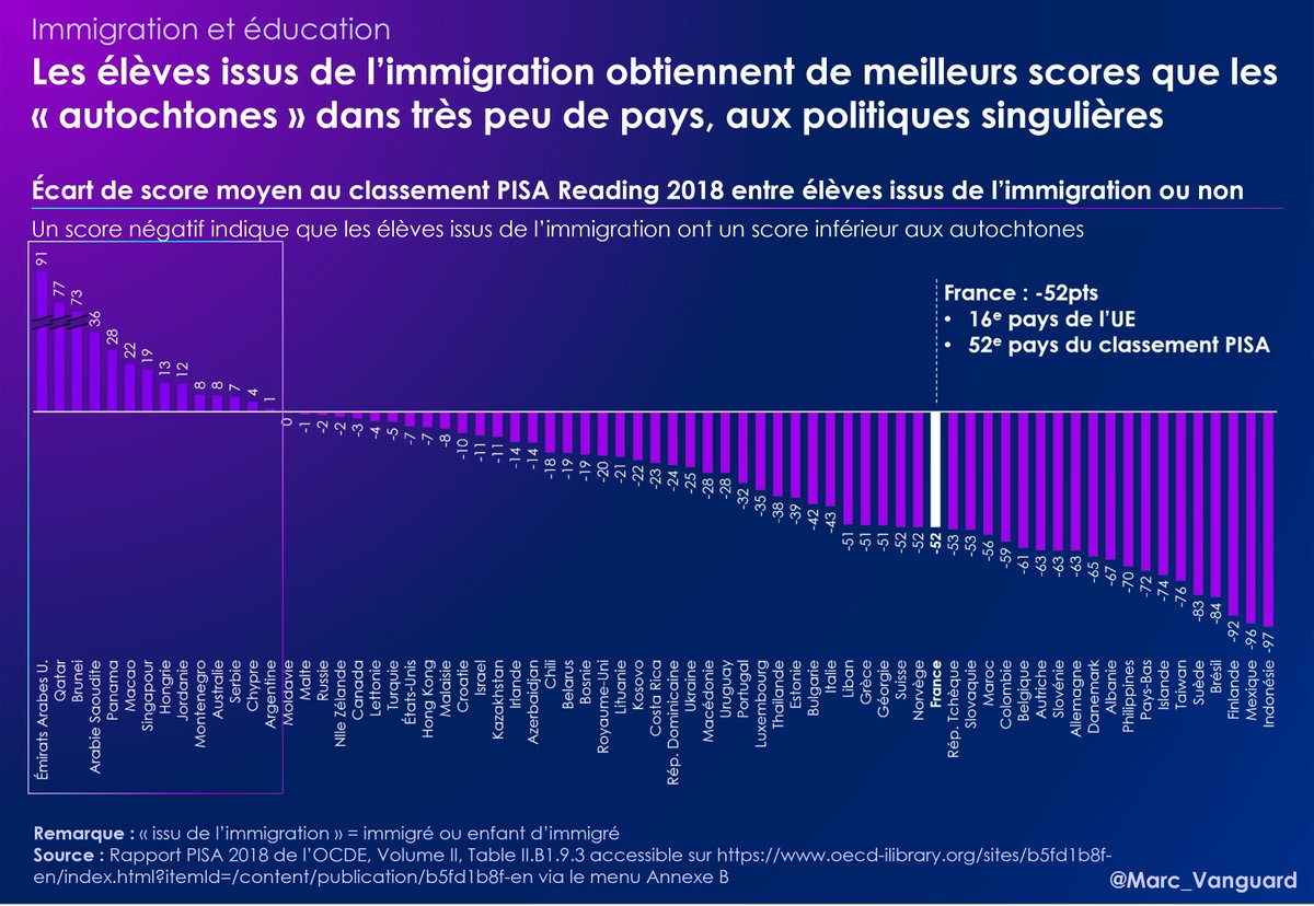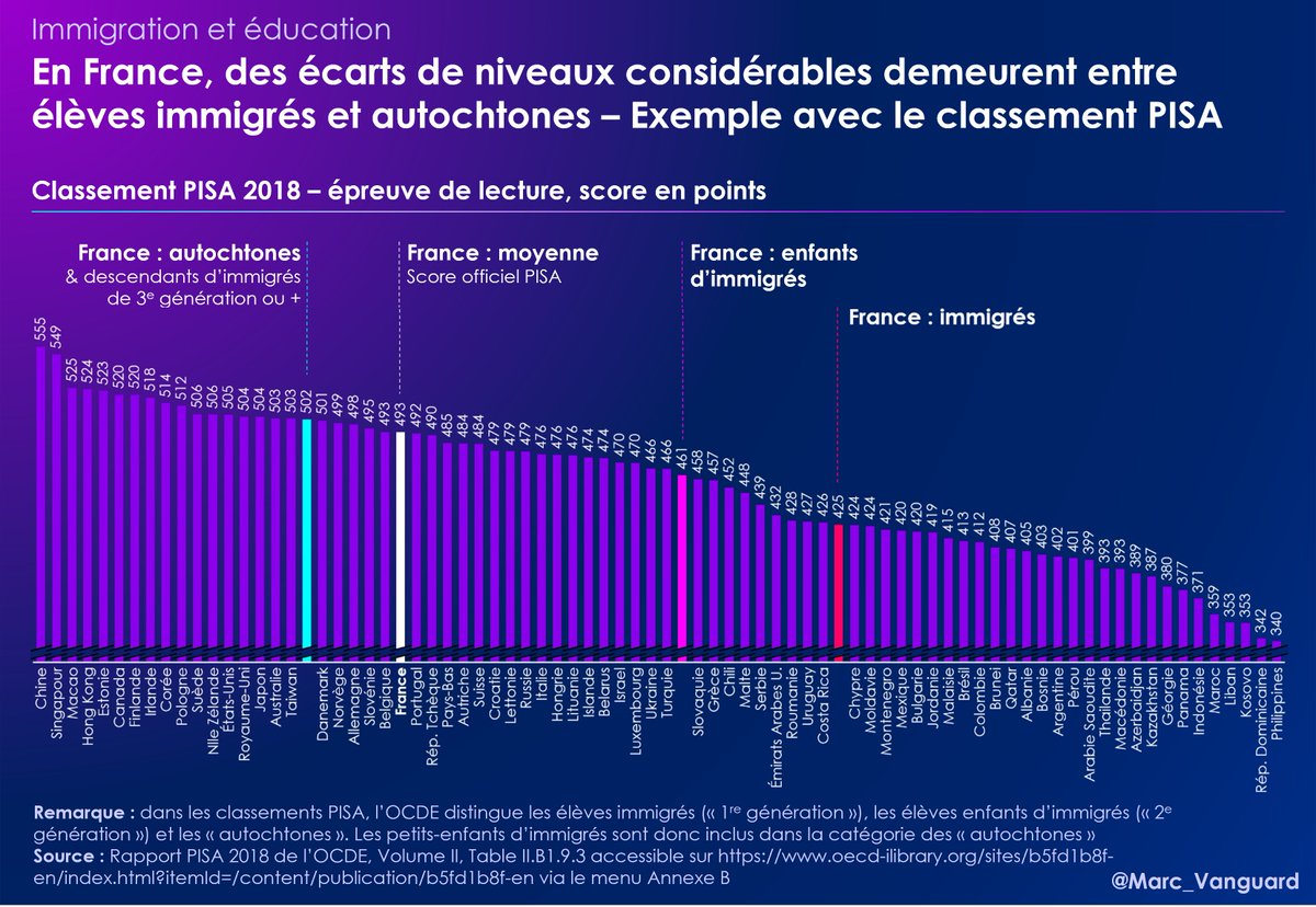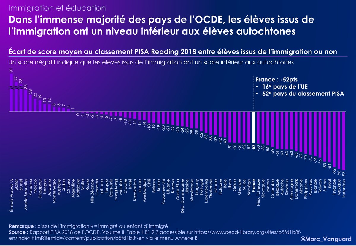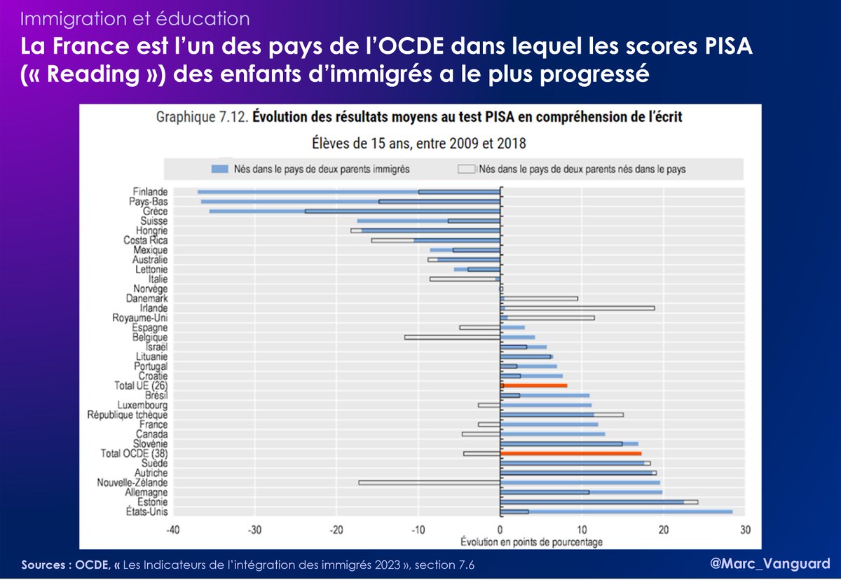 Pour rester sur cette note d'espoir, une étude OCDE confirme que la France est l'un des pays dans lesquels le score PISA Reading (compréhension de l'écrit) des enfants d'immigrés a le plus progressé entre 2009 et 2018.