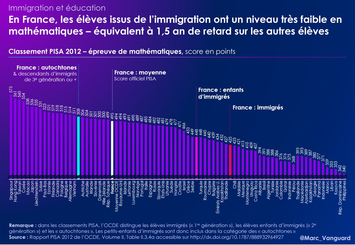 En revanche, en France (et en Suède), les écarts de score en maths sont abyssaux entre élèves issus de l'immigration ou non. Y compris à iso statut socio-économique :