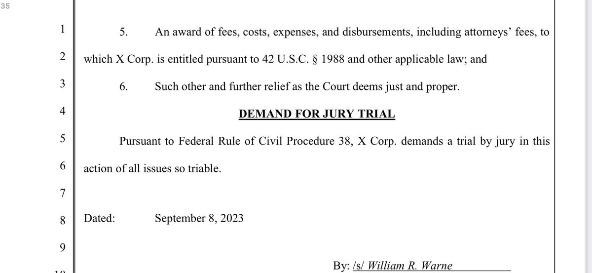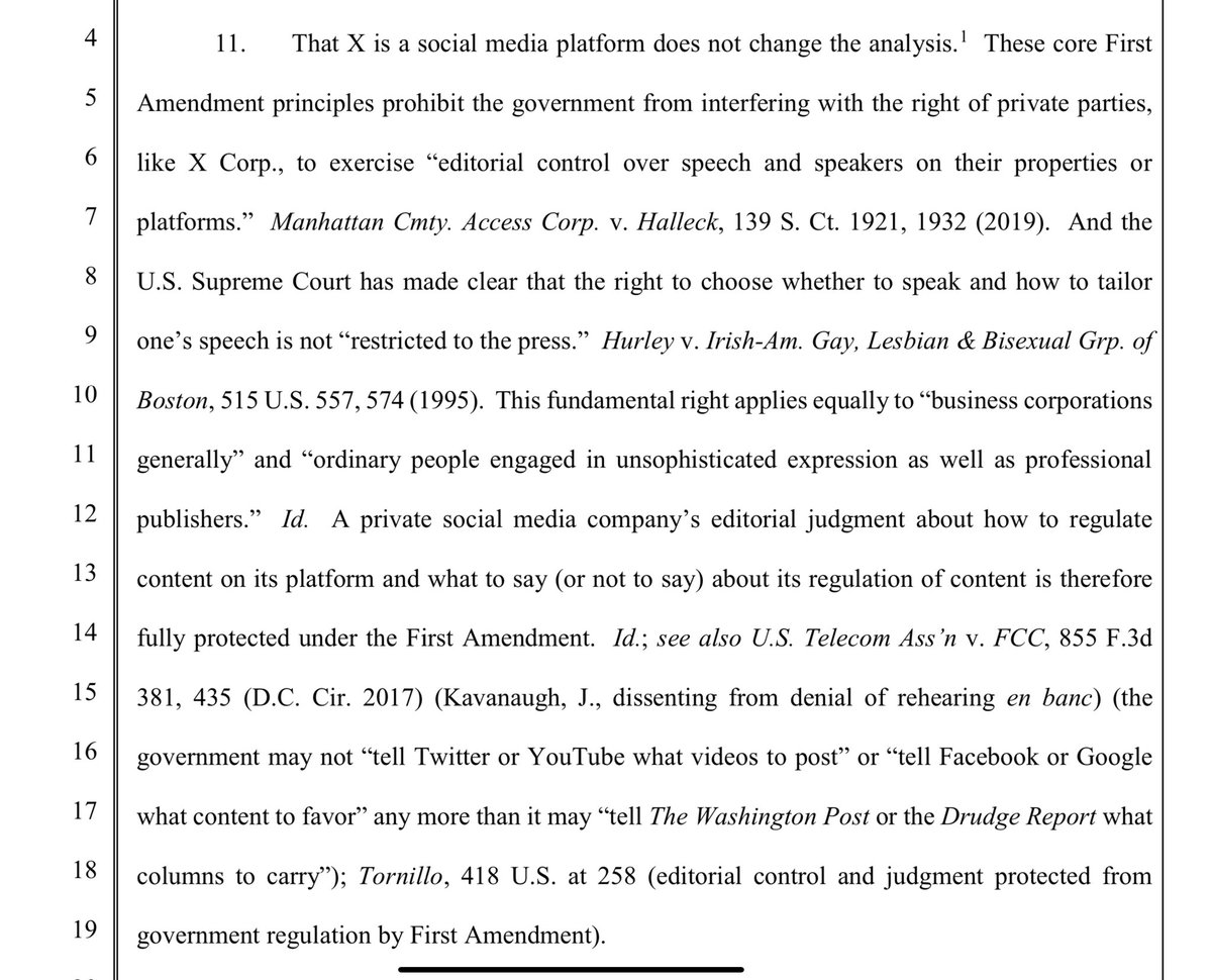 🚨It looks to me like there is a lot more here than meets the eye. X seems to be using the VERY blurred lines of Section 230 “platform v. Publisher” arguments citing numerous lawsuits as precedent for their basis. I happen to agree with how they are positioning this; after all, X is a private company…