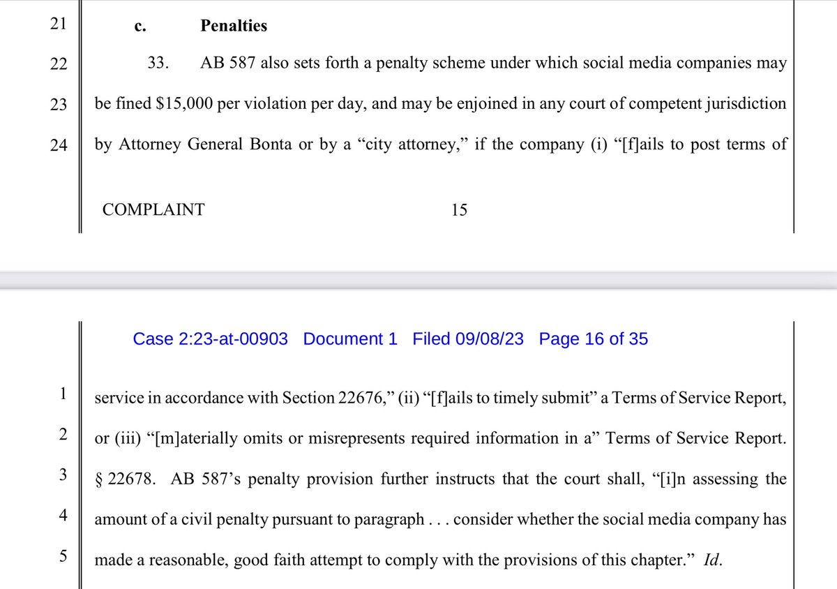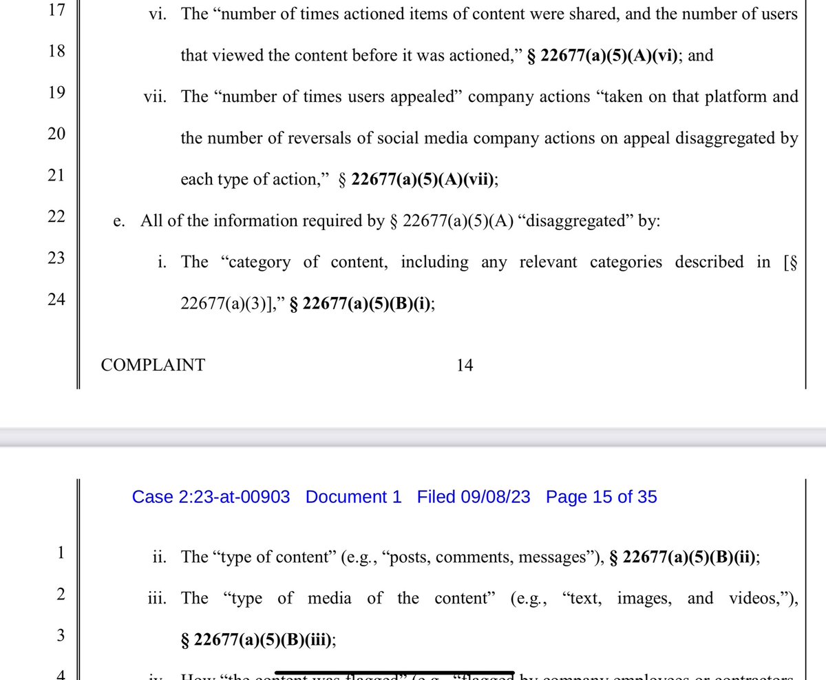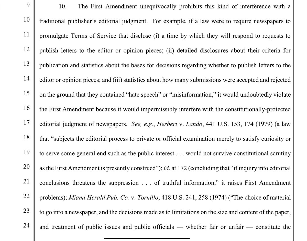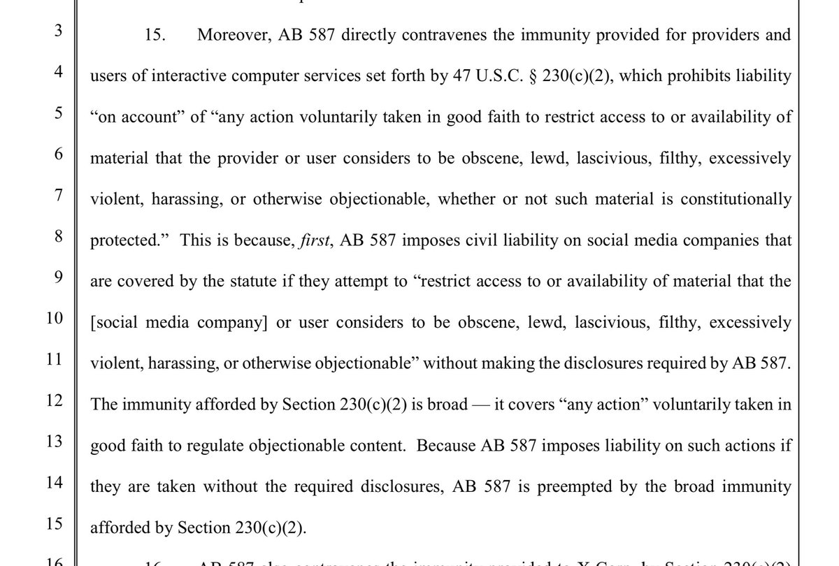 Now we are getting more into 230…Here they are arguing that the law VIOLATES their 230 immunity because they are being fined for inaction.. This is getting super interesting.