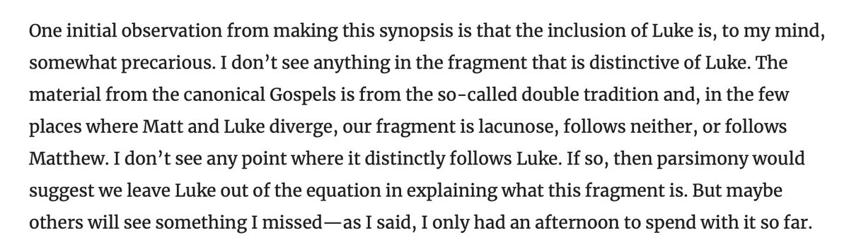 The first article was published on August 31 by @candidamoss who says: "The significance of the fragment lies in its date and contents" dated to 2nd cent. (we only have a few MSS that early), and it contains a mixture of canonical & non-canonical material