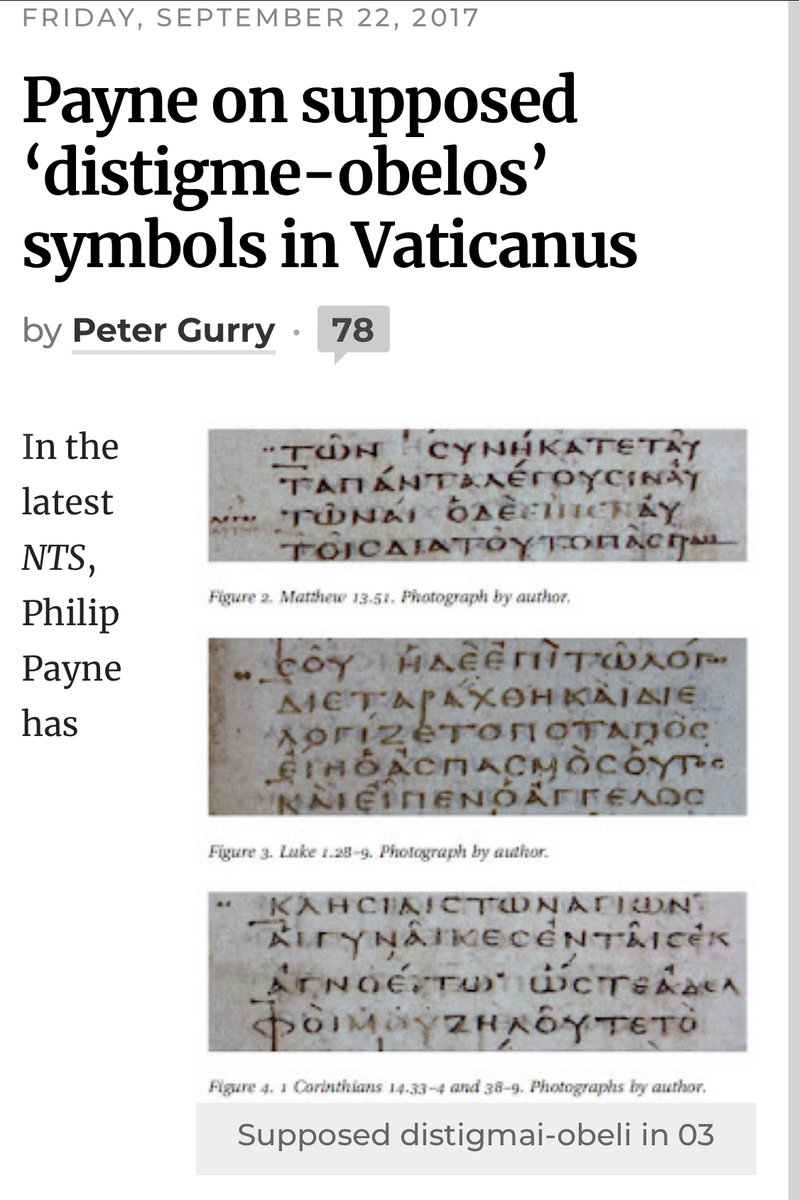There’s been a lot of talk about a bombshell set of papers at SBL about the distigmai of Codex Vaticanus and what this means for @PhilipBPayne’s view