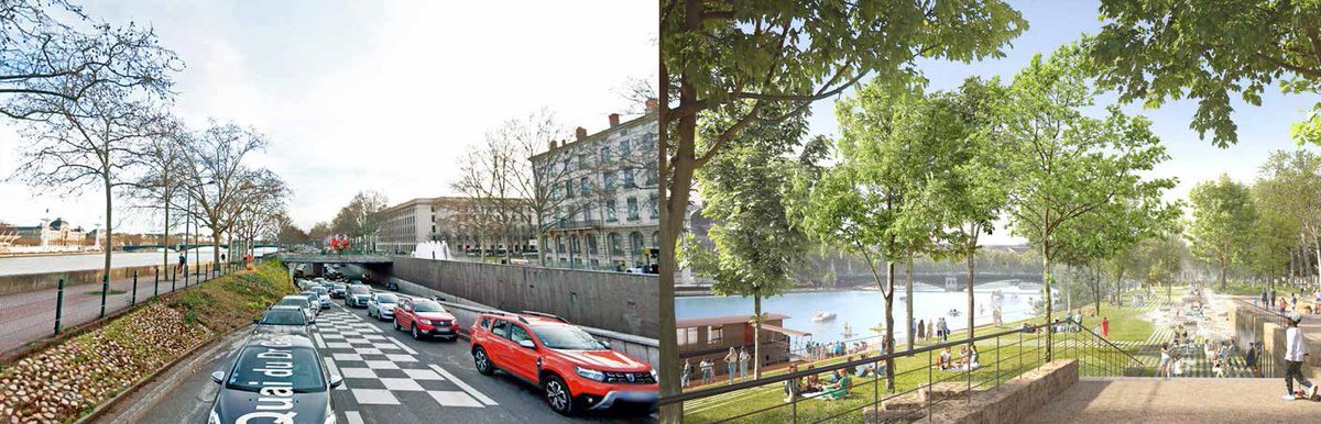 🟢 C'est pour cette raison que nous sommes en train de réhabiliter la Rive droite du Rhône. Afin de rendre ce lieu au cœur de la ville accessible aux habitants, alors qu'il est aujourd'hui surtout une voie rapide qui traverse notre Métropole.