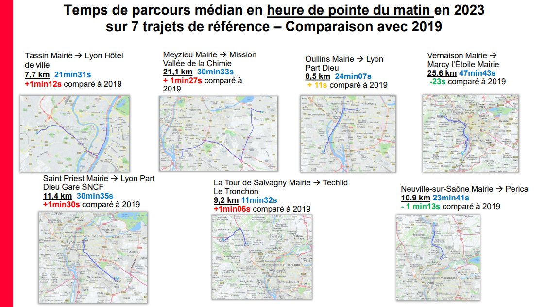 Pour surveiller la congestion, nous surveillons par exemple des trajets fréquents lors des heures de pointes (7 exemples)👇