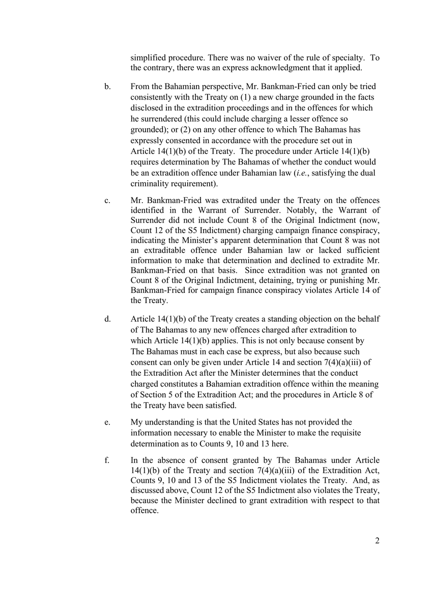 At least part of it seems to come down to the fact that additional charges were added after SBF's extradition agreement was made.