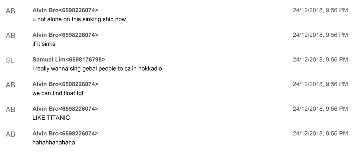 Chats between Samuel Lim (former Binance Chief Compliance Officer) and Alvin Bro (another Binance employee):