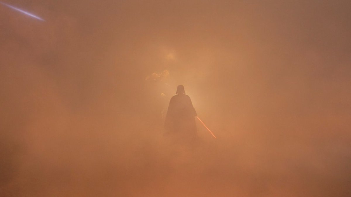 - Vemos los ojos rojos del lado oscuro de Anakin Skywalker, escuchamos la respiración de Darth Vader, suena de fondo la marcha Imperial e incluso podemos ver brevemente a Vader.