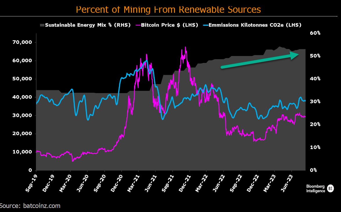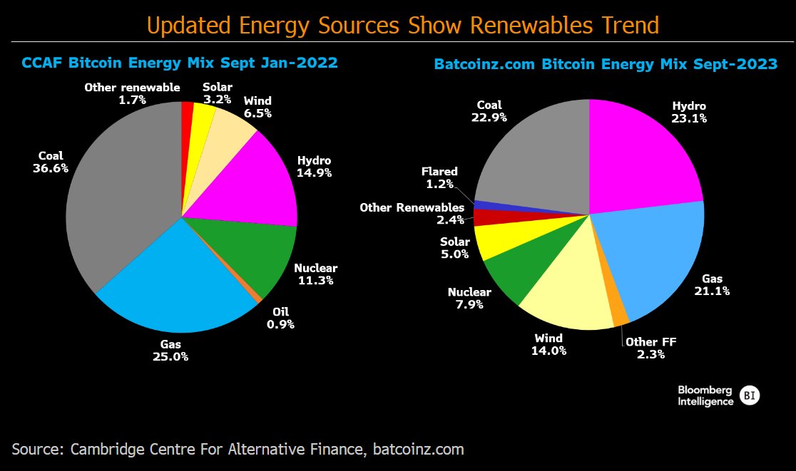 The #Bitcoin energy narrative is flipping! A new note out this morning on the Bloomberg Terminal looks at the rapid rise of sustainable energy sources in $BTC mining