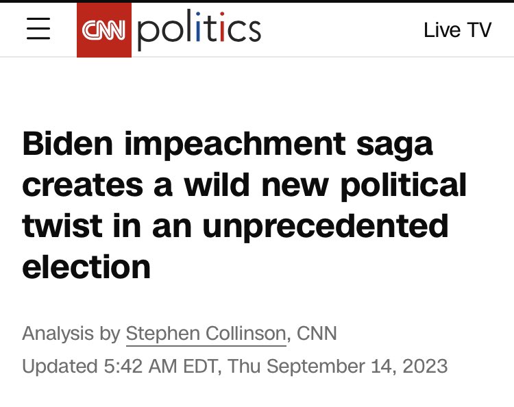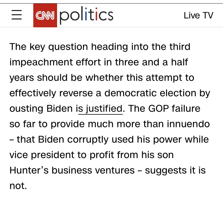 One tidbit I can’t get over — @CNN has seemingly changed its tune on whether an impeachment amounts to an “attempt to effectively reverse a democratic election” … something tells me they wouldn’t have said that about the last one.