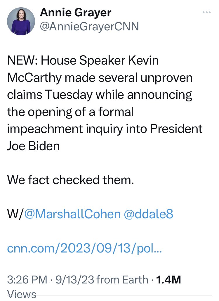 This comes as outlets are already parroting Biden’s talking points about the impeachment more broadly.