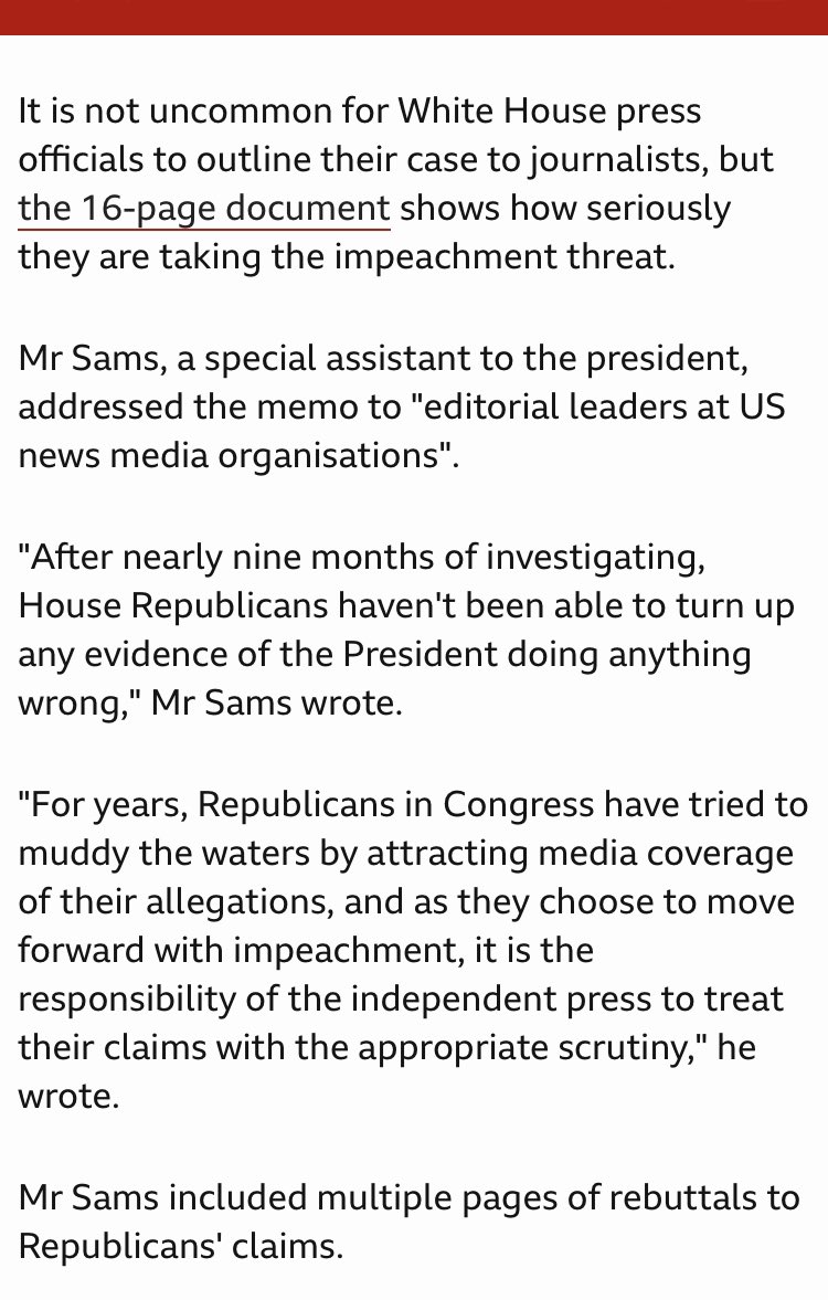 Yesterday the White House sent out a memo to heads of major media organizations telling them to more aggressively defend the president as he faces impeachment.