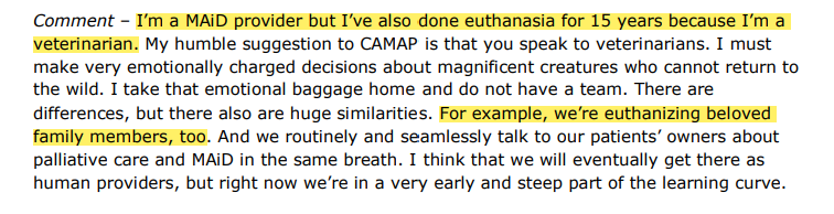 Well, someone at CAMAP even claimed that they are a veterinarian who is also a MAID provider.