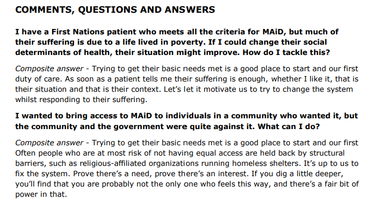 @NRO Consider a 2021 seminar from the leading group of "MAID providers" in Canada, a group that is funded by the gov't to train clinicians nationwide.
