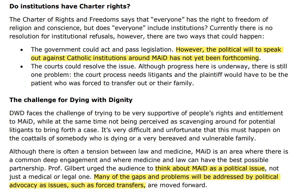 CAMAP claims they're not an "advocacy organization." And yet they discussed how they needed to push through "politics" to get MAID-free spaces out of healthcare—which in Canada mostly means faith-based hospitals.
