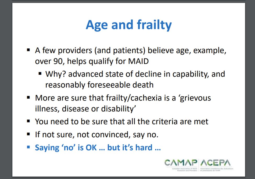 CAMAP, I should add, is also an organization that teaches how age alone "helps qualify for MAID", even though Quebec's monitoring agency claims that is illegal