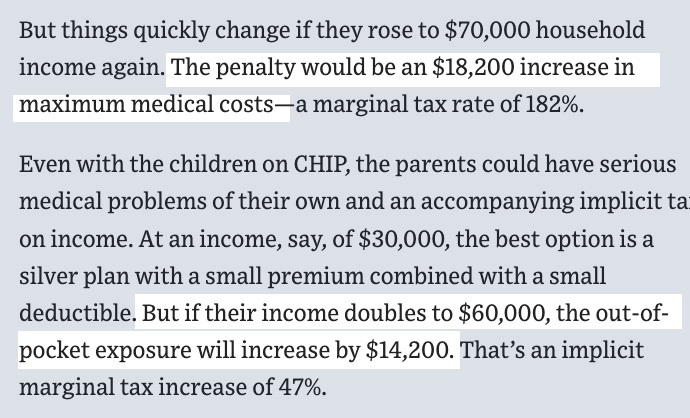 Next, they look at the same family with a $60,000/year income (200% FPL). They correctly note that the *children* would then be eligible for CHIP or Medicaid, which is awesome.