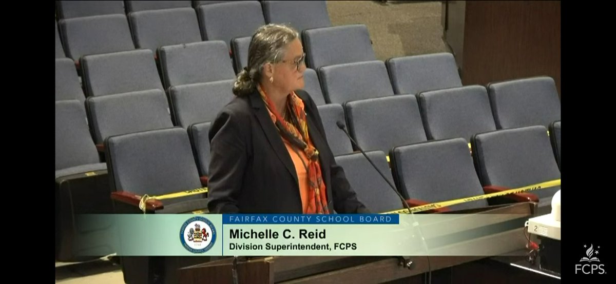Dr. Reid touts record numbers of National Merit semifinalists & commended students, a response to/win for parents that pushed back against FCPS's past efforts to not celebrate kids' accomplishments.