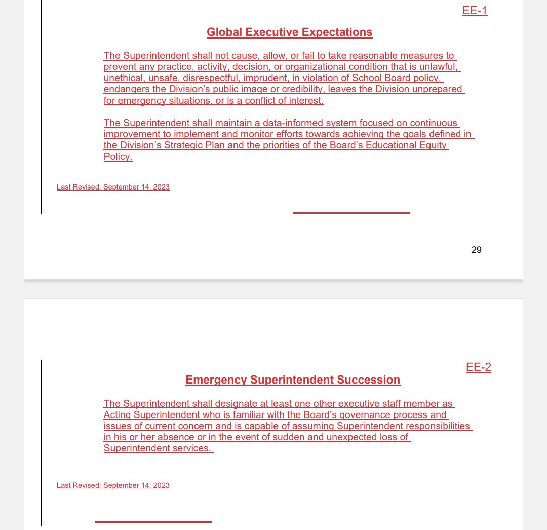 @Megan4Schools The SB passes new executive expectations for the Supt., which among other things requires the Supt to provide an annual monitoring report aligning with enumerated expectations during a public meeting & enables the board to request a corrective action plan, if needed.