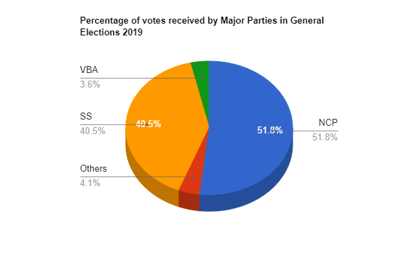 In the 2019 Assembly elections BJP won 1 segment - Satara whereas SHS won two segments - Patan and Koregaon. NCP won 2 segments - Karad North and Wai. Prithviraj Chavan(INC) won Karad South.