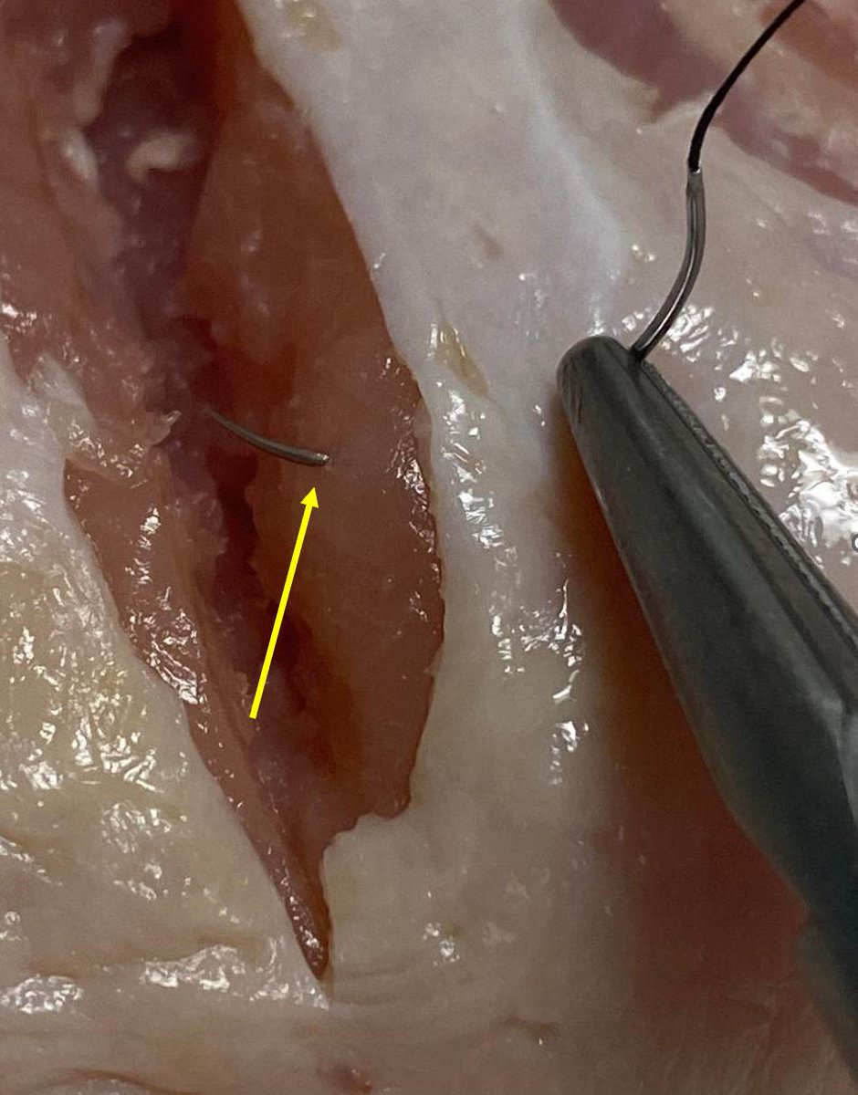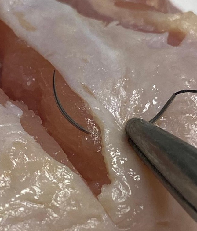 Put another way, when placing the sutures, the goal is to get the two tissue squares to become approximated without damaging them.