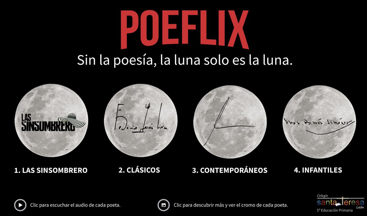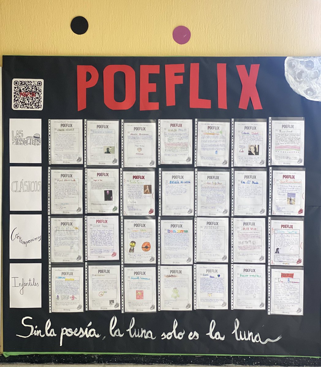 Comparto con vosotros un proyecto que suelo realizar con mis alumnos para acercarlos al maravilloso mundo de la poesía. Lo he titulado “Poeflix” - Sin la poesía, la luna solo es la luna. 🌔 Aquí os lo dejo paso a paso por si os sirve. Abro hilo. 🧵👇