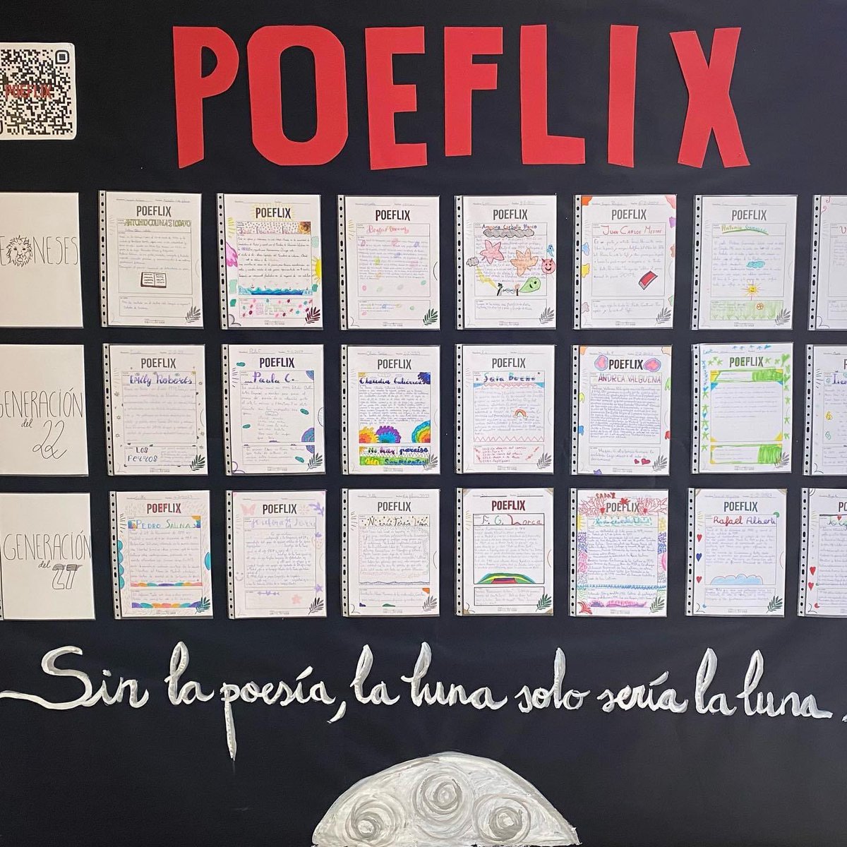 3️⃣ En este registro cuentan la vida y la obra de cada poeta. Lo plasmamos todo de manera analógica en nuestro gran tablero "Poeflix". Aquí lo podéis ver. 👇