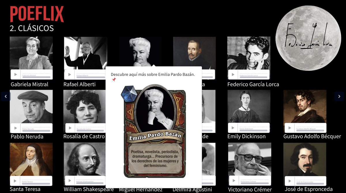 5️⃣ Además, en esta presentación podéis ver cómo crean un cromo coleccionable de cada poeta. Pasando el puntero por encima de cada imagen os saldrá. 👉 Para hacer estos cromos utilizamos esta web. 👉 view.genial.ly/61f470eb8bc496… hearthcards.net/index_moo2.php