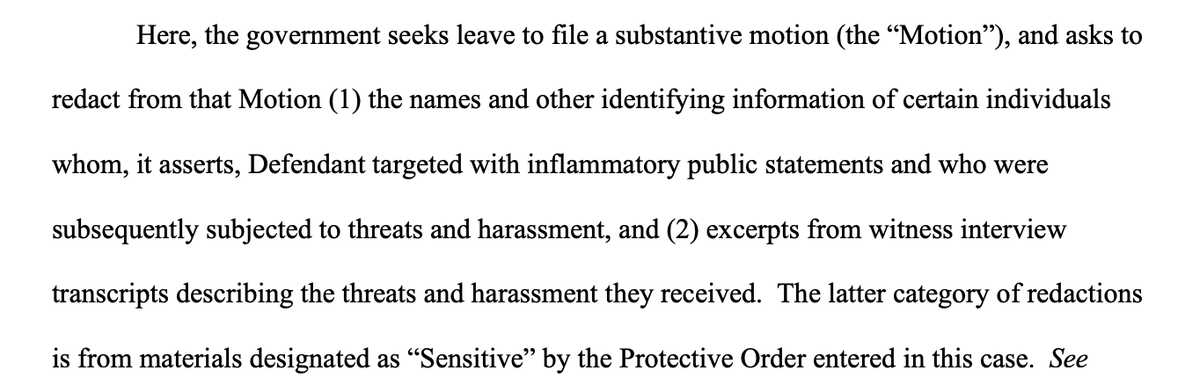 JUST IN: Judge Chutkan is about to unseal a filing related to potential witness intimidation by Trump, alleged by prosecutors. It will be redacted to exclude identiying information, but she mentions the government is seeking some form of "relief.